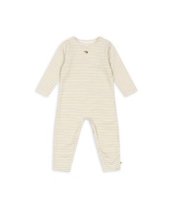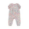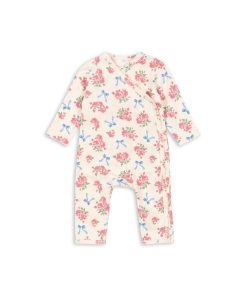 Soft onesie for newborns in a light cotton blend with a hint of stretch. Designed with a wrap closure that features snap buttons along the body and legs for easy dressing.