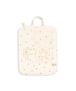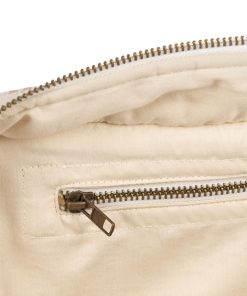 Large quilted toiletry bag designed with one big compartment and a small inside pocket. It is softly padded in order to keep your essentials safe. Closes with a zipper.