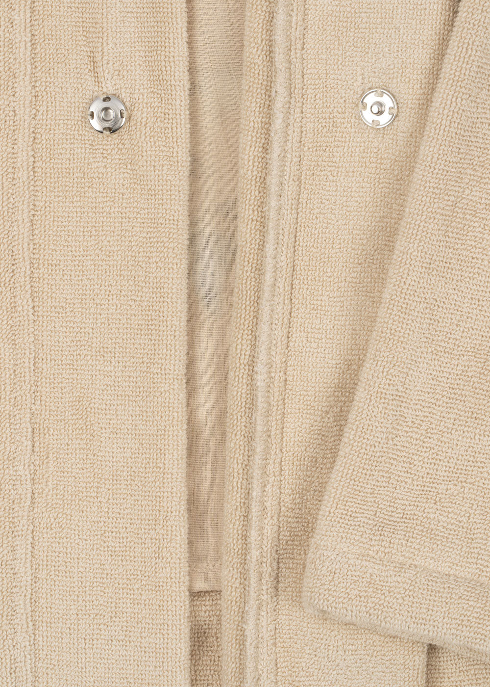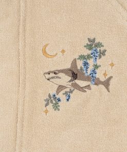 Hooded bathrobe with a decorative embroidery and a detachable belt.