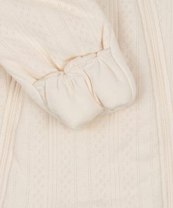 Padded onesie in decorative pointelle. Designed with a hoodie and cover for the feet.
