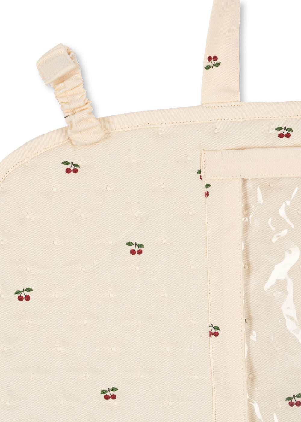 The organizer also features an elasticized strap with velcro closure to hang an activity toy or pacifier case on.
