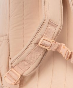 Soft and lightweight backpack in a quilted design with a practical bottle pocket on the side, small front pocket with a zipper, and a practical chest strap that helps adjust the weight and adds extra support.