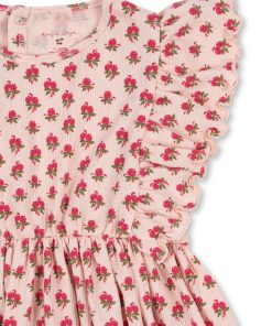 Soft cotton dress with a cinched waist and a frill details.
