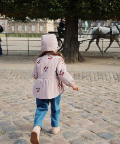 Soft, padded hat that ties under the chin. Designed with a comfy inside fleece lining.