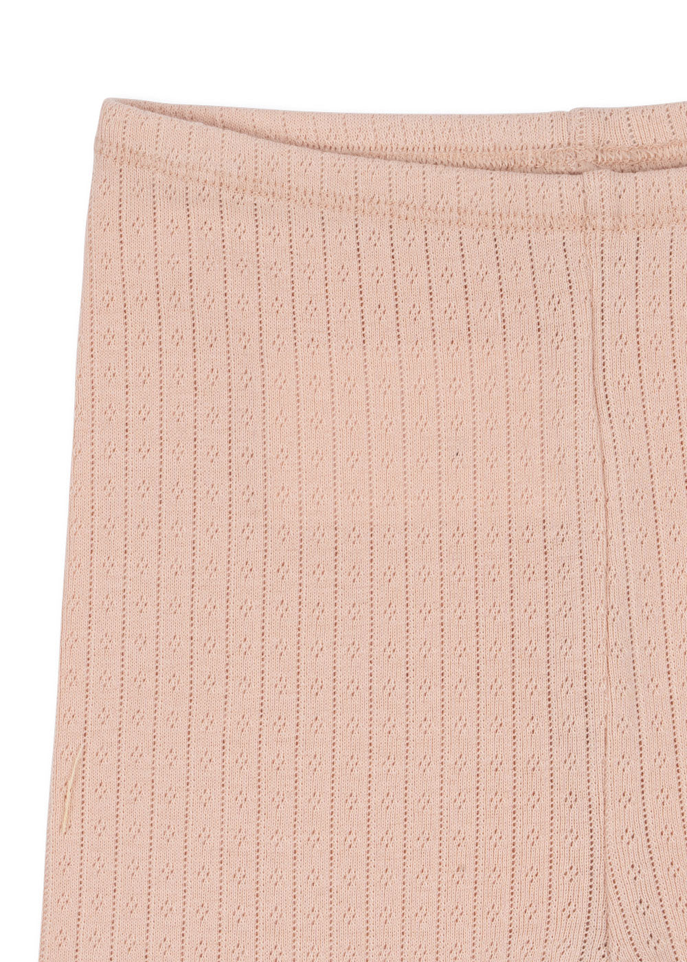 Knee-length leggings with decorative all-over pointelle pattern and a comfy elastic waist. A must-have basic piece.