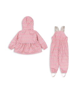 Wind-resistant and waterproof PU rain set with warm fleece lining inside. Features essential detailing like a lined, detachable hood, elastic cuffs, and welded seams for complete protection against the elements.