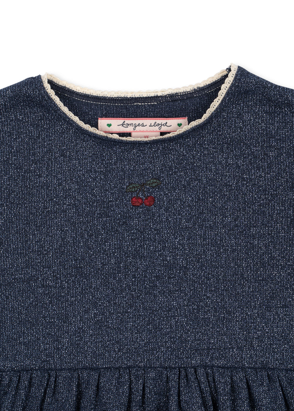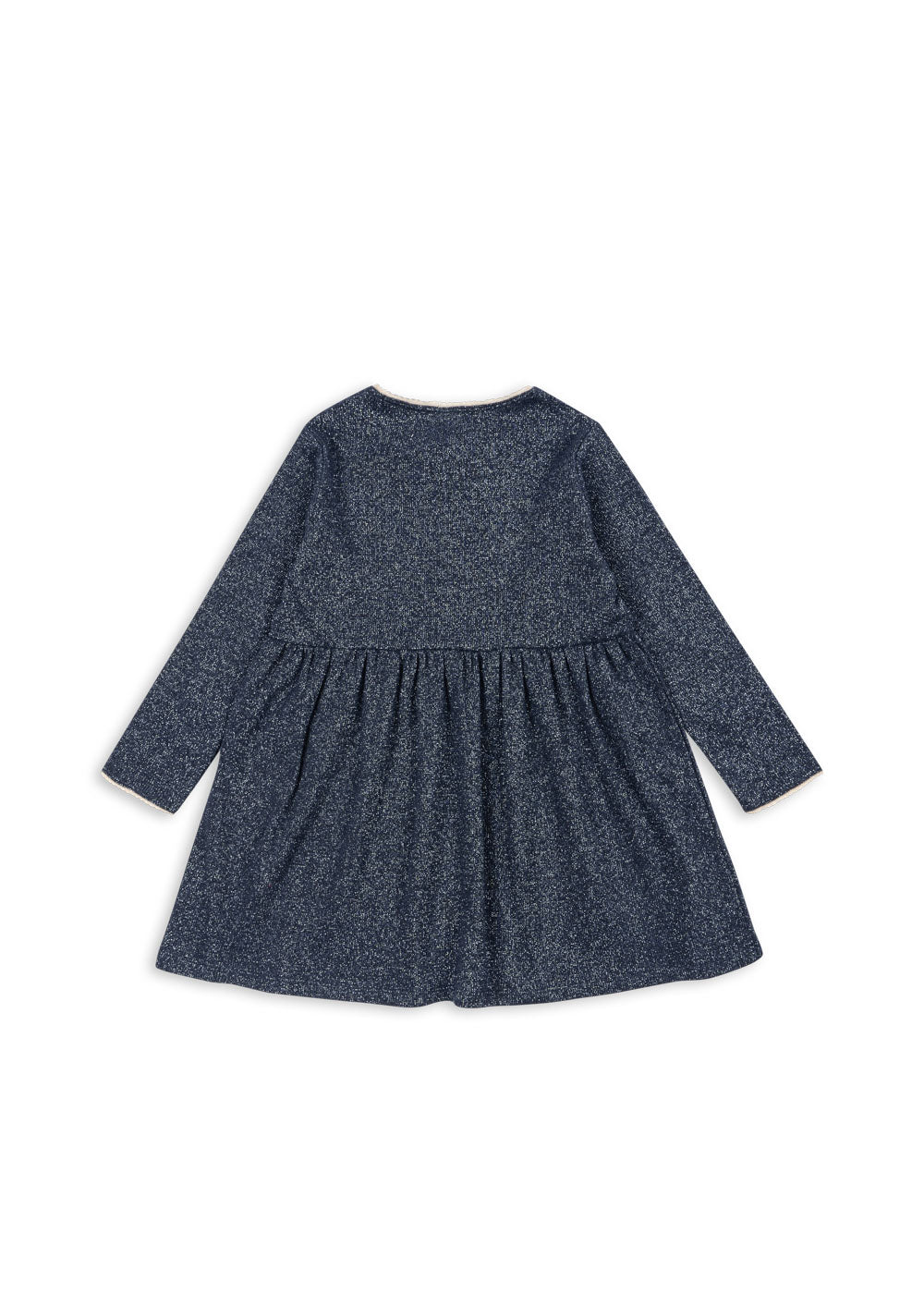 Soft dress made in a stretchy cotton fabric. Woven with a shiny lurex thread that adds a sparkling finish to this everyday piece.