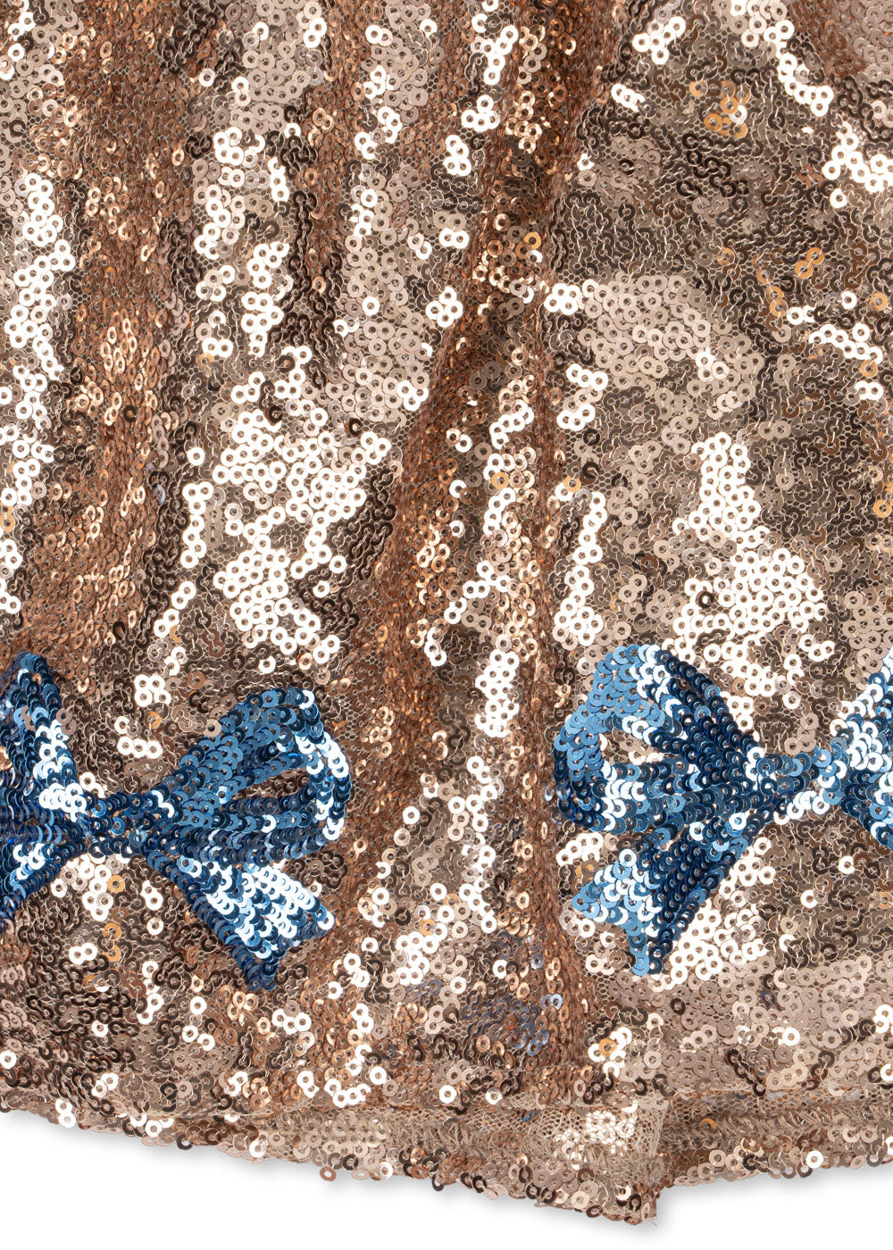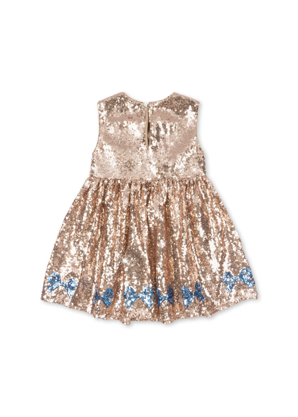 A true showstopper: The Starla dress is dressed in sparkly sequins, and features an accentuated waistline, round neck, and flared skirt.